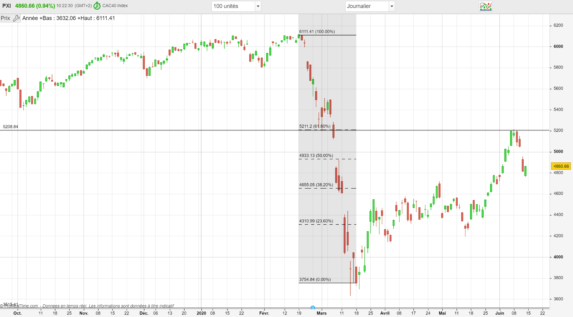 Le rebond du CAC40 depuis Mars a effectué un retracement parfait sur la ligne des 61,8% de Fibonacci